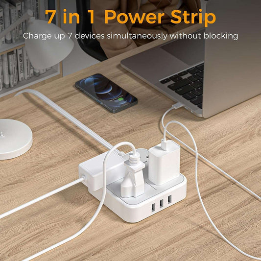 5 Ft Extension Cord Flat Plug with 4 Outlets and 3 USB Charge
