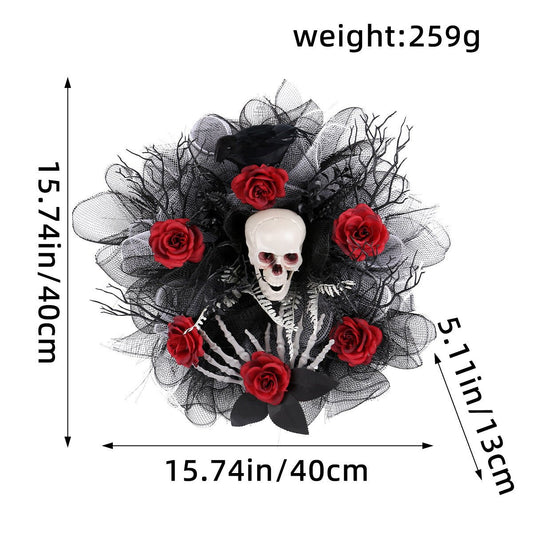 Halloween Door Decoration: Red Rose Skull Mesh Garland