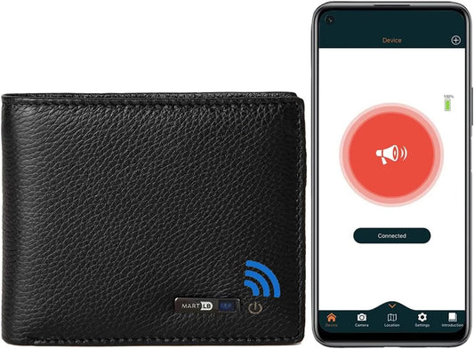 Smart LB Wallet - Trackable Anti-Lost Bluetooth Wallet with Intelligent Tracker Finder, Position Locator via Phone GPS, Bifold Genuine Cowhide Leather, Minimalist Credit Card Holder