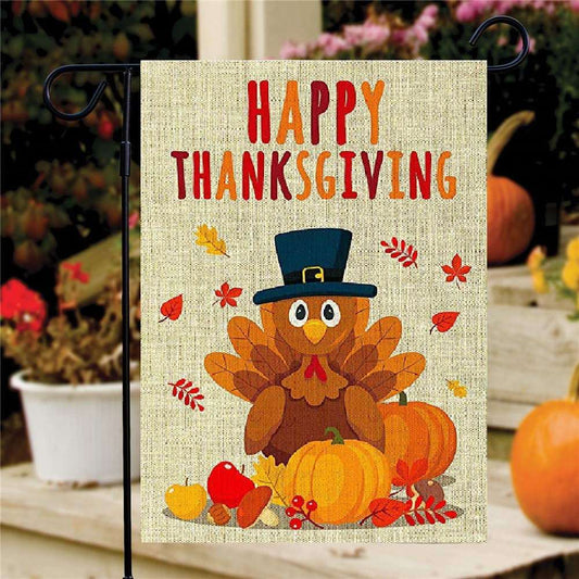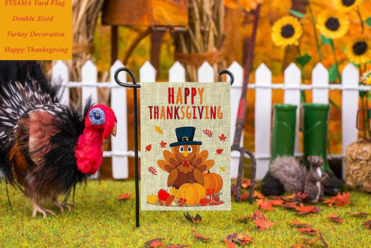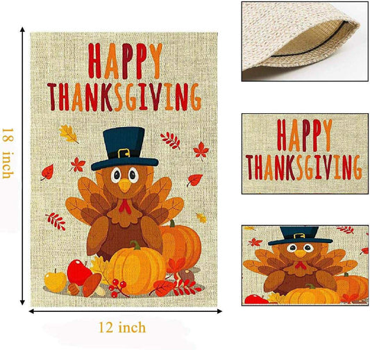 Decorative Happy Thanksgiving Turkey Garden Flag 12 X 18 Doule-Sized Autumn Harvest Yard Flag