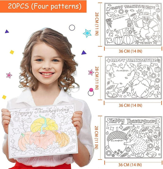 Thanksgiving Coloring Placemats for Kids(20 Sheets)