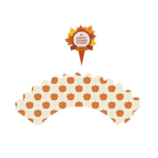Thanksgiving Dessert Table Decor Set Cake Wrappers and Toppers