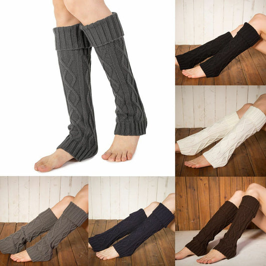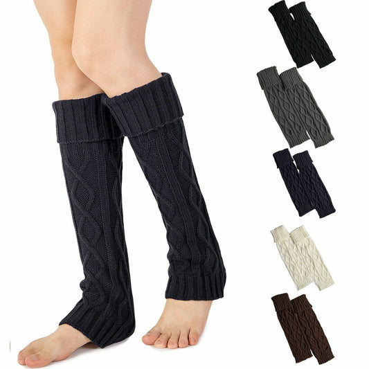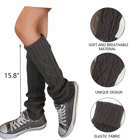Women's Ribbed Crochet Knit Leg Warmers - Knee High Wool Boot Socks for Winter