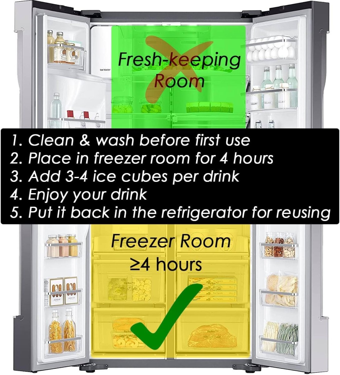 The smooth surface of our metal freezer cubes won’t harm your glasses or lips, making them safe to use. After enjoying your drink, wash the cubes with water and store them in the provided plastic storage box to keep them clean and organized in your freezer.