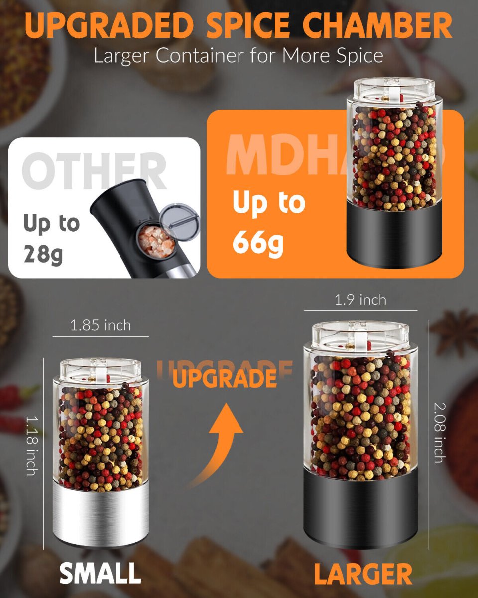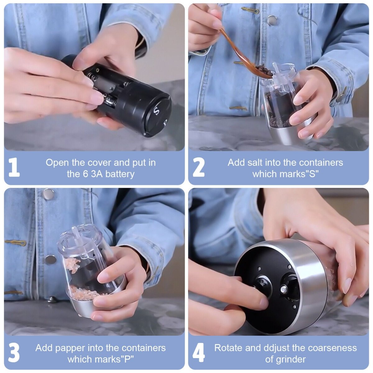 Battery Powered Electric Salt and Pepper Grinders with Adjustable Coarseness