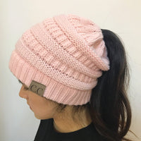 Chunky Cable Knit High Bun Ponytail Beanie Hat
