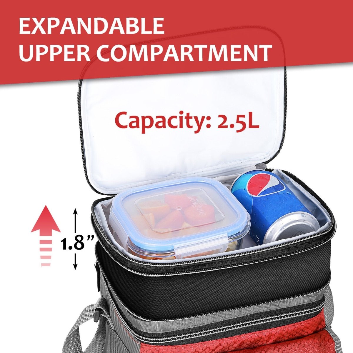 The expandable top section gives you more space when you need it. The bottom holds up to 6 cans (330ml) and fits all your lunch essentials.