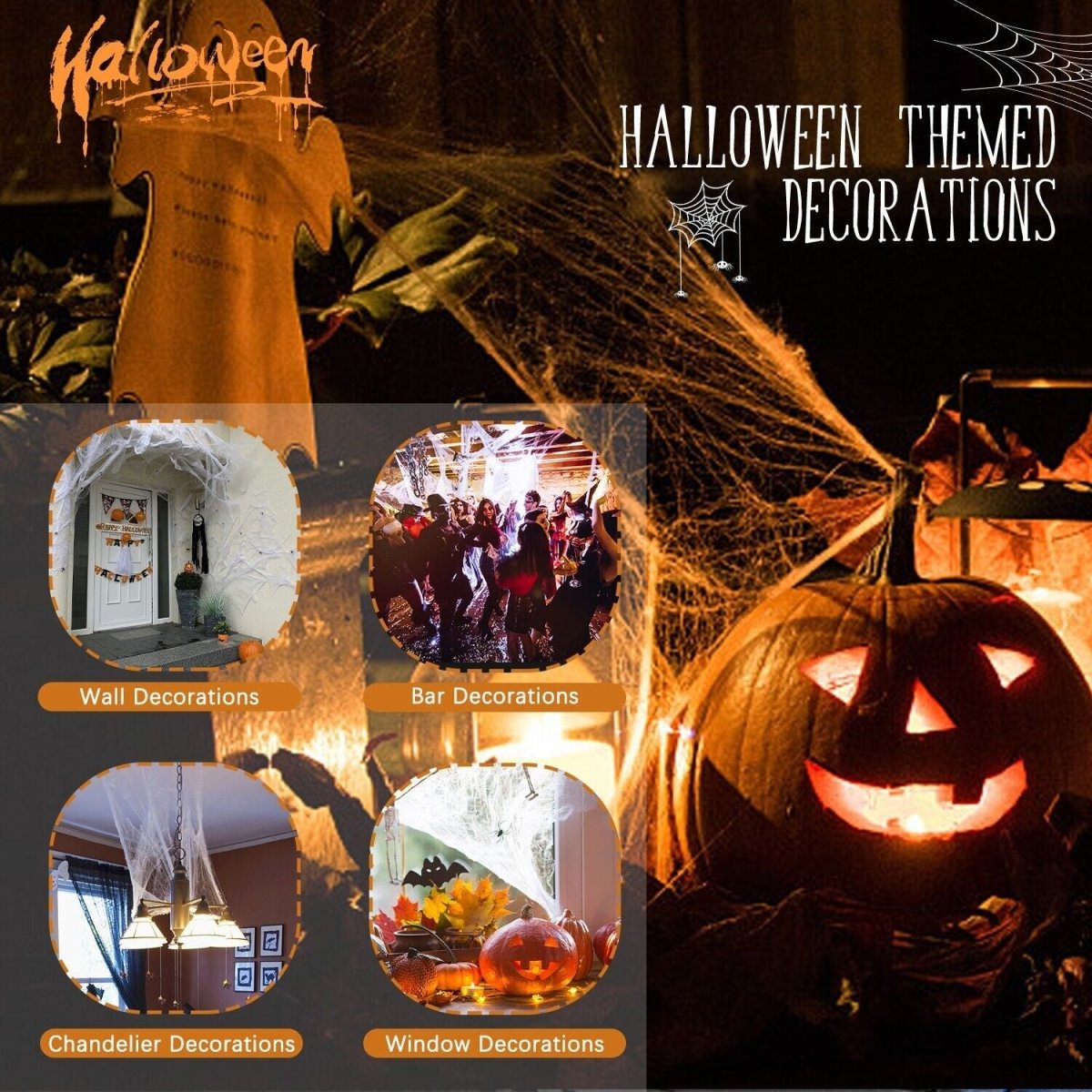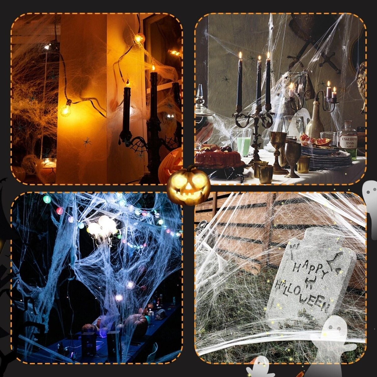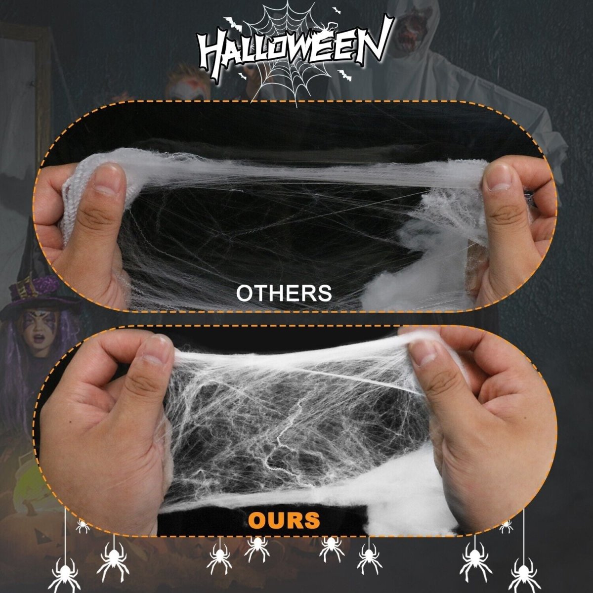 • Super Stretchy Cobwebs: Made of soft, hand-knotted material, the 100-gram web can stretch and shape to cover large areas, offering a realistic look that is durable and easy to clean.